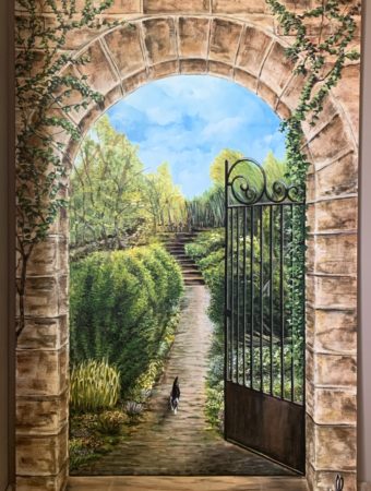 Le trompe l’œil anime et embellit un mur ordinaire, peut aussi donner de la profondeur à une pièce un peu petite, il invite au rêve et à l’imagination, à l’évasion !
