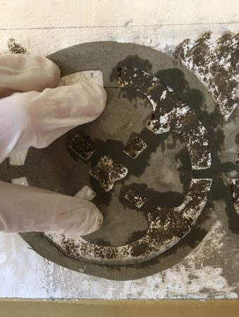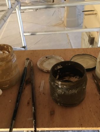 Pour l’ensemble de mon activité de peintre en décor, aussi bien en restitution des peintures murales des monuments du patrimoine que dans des environnements contemporains, je souhaite m’inscrire dans cette tradition en utilisant des peintures ou des enduits écologiques, en évitant autant que faire se peut les produits à base de substances pétrochimiques, qui dégagent des composés organiques volatiles (COV), toxiques pour l’environnement et pour notre santé.